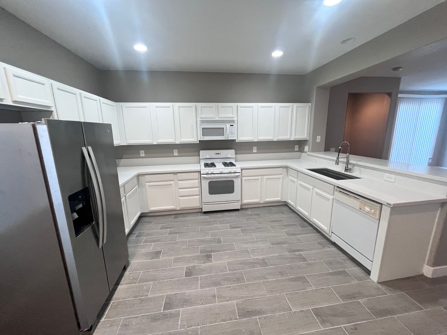 Beautifully remodeled single-story home in Silverstone Ranch This stunning house offers a perfect blend of comfort and style. With 3 bedrooms and 2 bathrooms, it provides ample space for all your needs. The floor plan seamlessly connects the living area, dining space, and kitchen, creating a warm and inviting atmosphere. The kitchen boasts beautiful quartz countertops, complemented by a spacious pantry for all your storage needs. Enjoy your morning coffee in the cozy breakfast nook, flooded with natural light. The new wood look tile flooring throughout adds a touch of sophistication to the entire house. Retreat to the master bedroom, featuring a generous walk-in closet and an ensuite bathroom with a double sink and a relaxing soaking tub. The additional two bedrooms provide versatility, whether you need a home office or a guest room. Convenience is key with a separate laundry room and a tandem two-car garage, ensuring ample space for your vehicles and storage. This house also features new paint throughout, giving it a fresh and modern feel. Don't miss the opportunity to make this house your home. Contact us today to schedule a viewing.