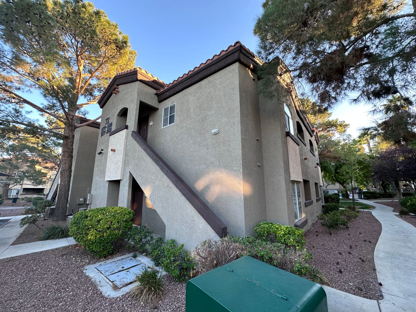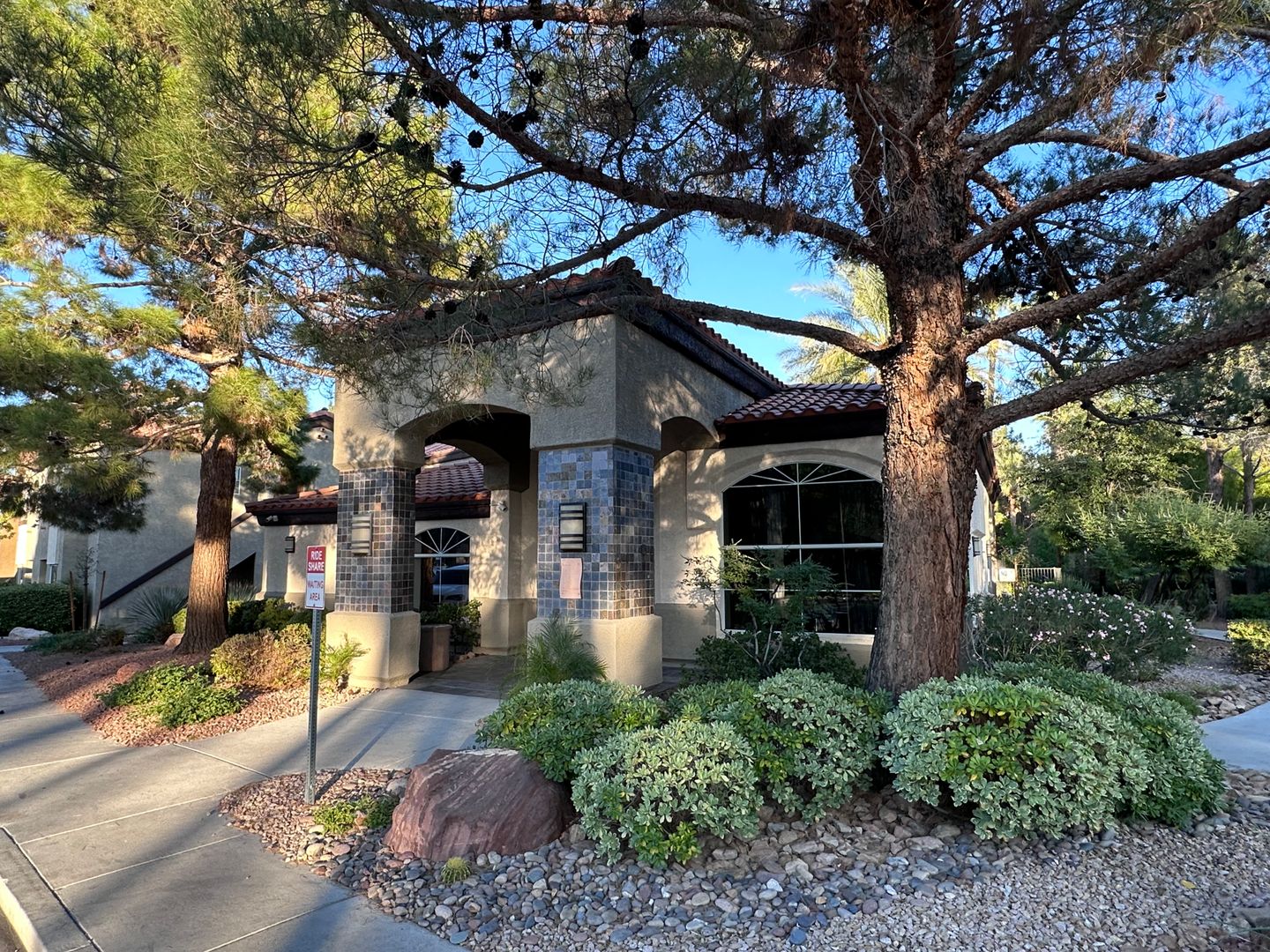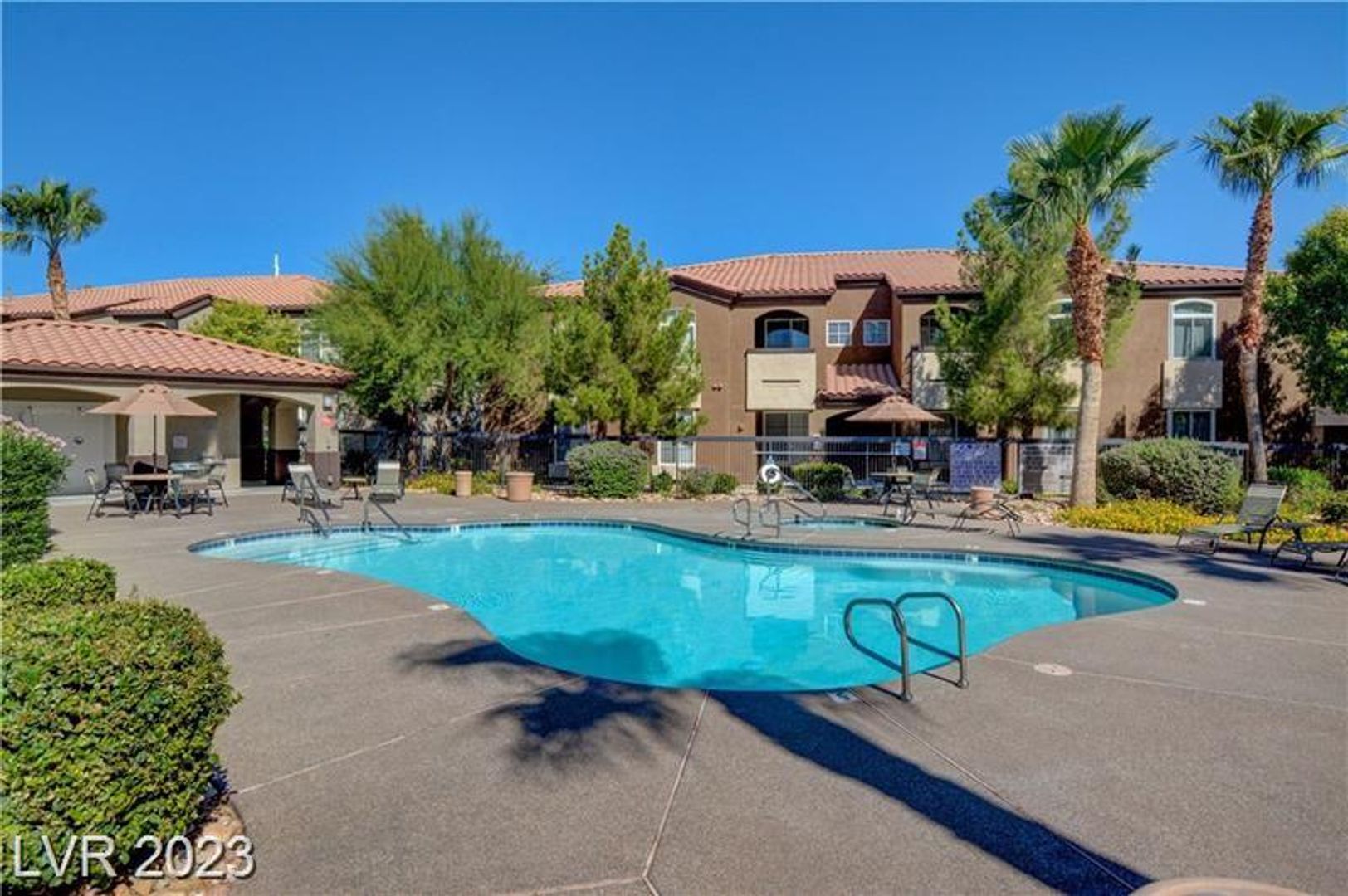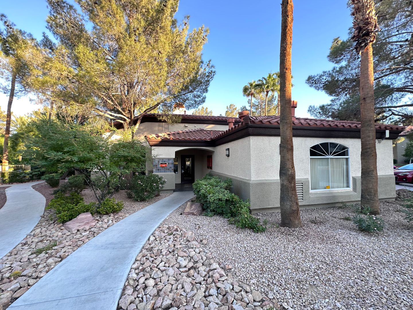 Highly sought after 1 bedroom, 1 bathroom condo on the 2nd floor in Las Vegas, NV. The unit features a private entrance, balcony, fireplace, primary walk-in closet and solid surface flooring throughout. The kitchen includes stainless steel appliances, and a separate laundry room that houses a full-size washer and dryer. Separate water heater closet on the balcony. The community offers a pool, tennis courts, and a park within a guard-gated complex. Carport parking is provided, and the location is close to shopping, restaurants, the 15 Freeway, and South Point Casino.