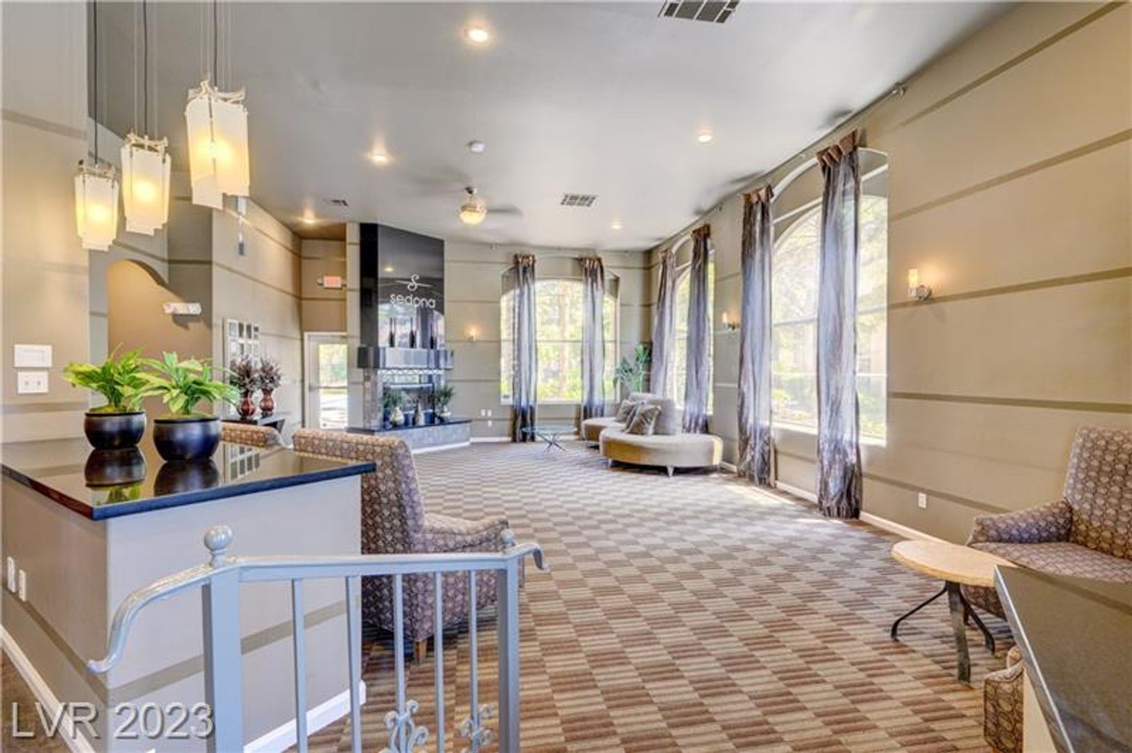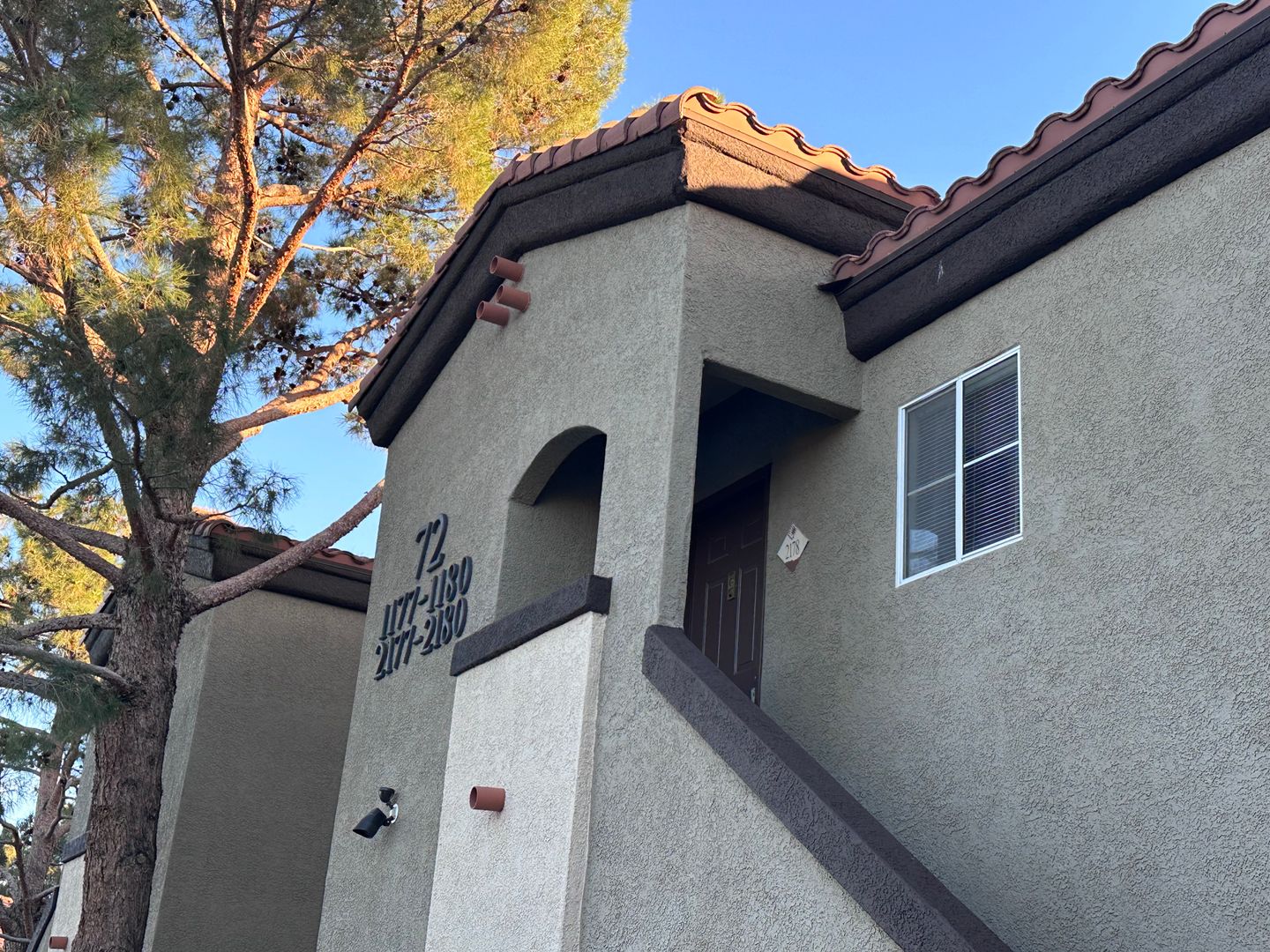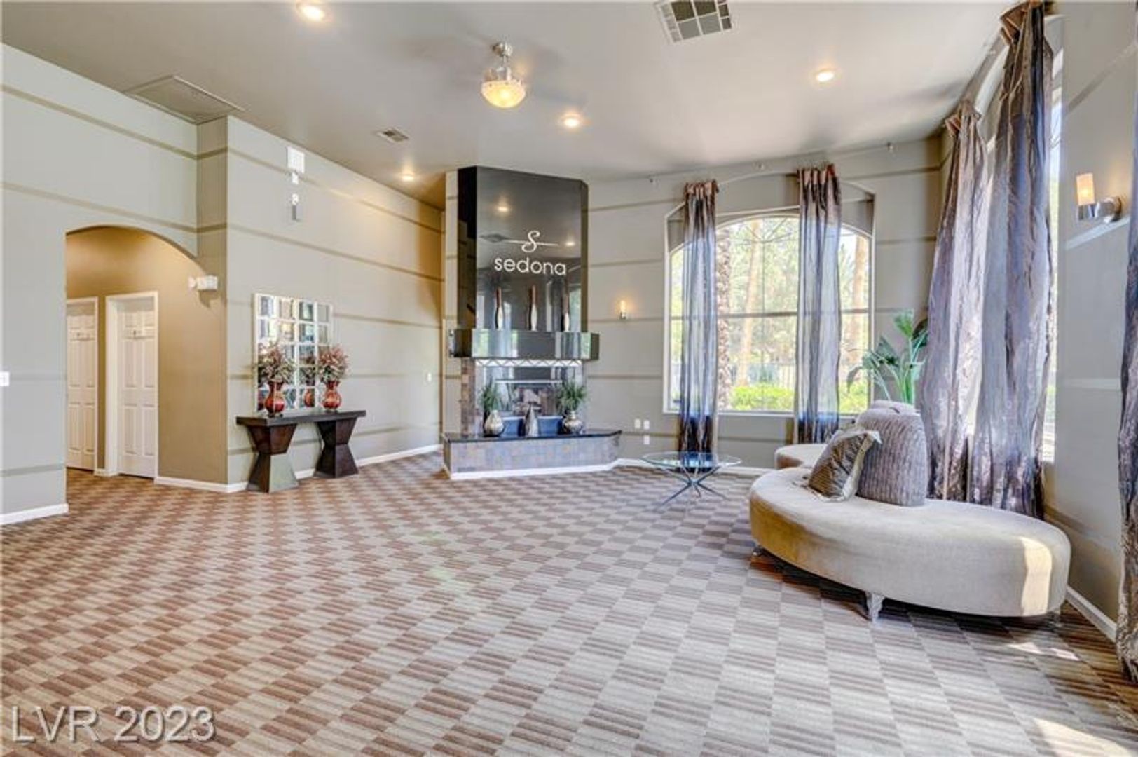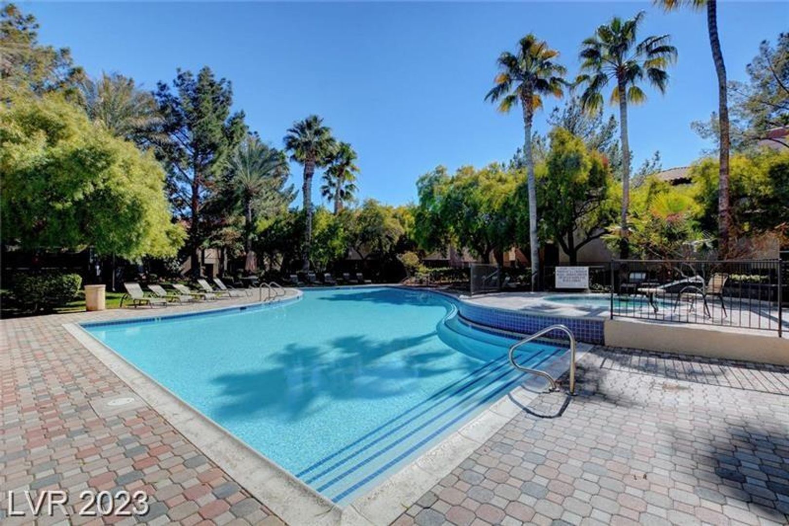 Highly sought after 1 bedroom, 1 bathroom condo on the 2nd floor in Las Vegas, NV. The unit features a private entrance, balcony, fireplace, primary walk-in closet and solid surface flooring throughout. The kitchen includes stainless steel appliances, and a separate laundry room that houses a full-size washer and dryer. Separate water heater closet on the balcony. The community offers a pool, tennis courts, and a park within a guard-gated complex. Carport parking is provided, and the location is close to shopping, restaurants, the 15 Freeway, and South Point Casino.