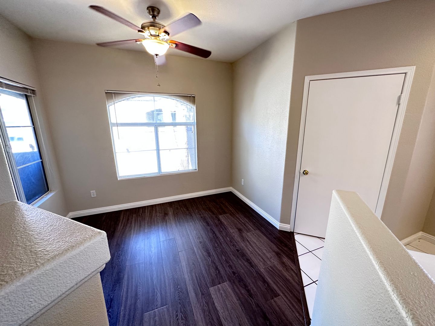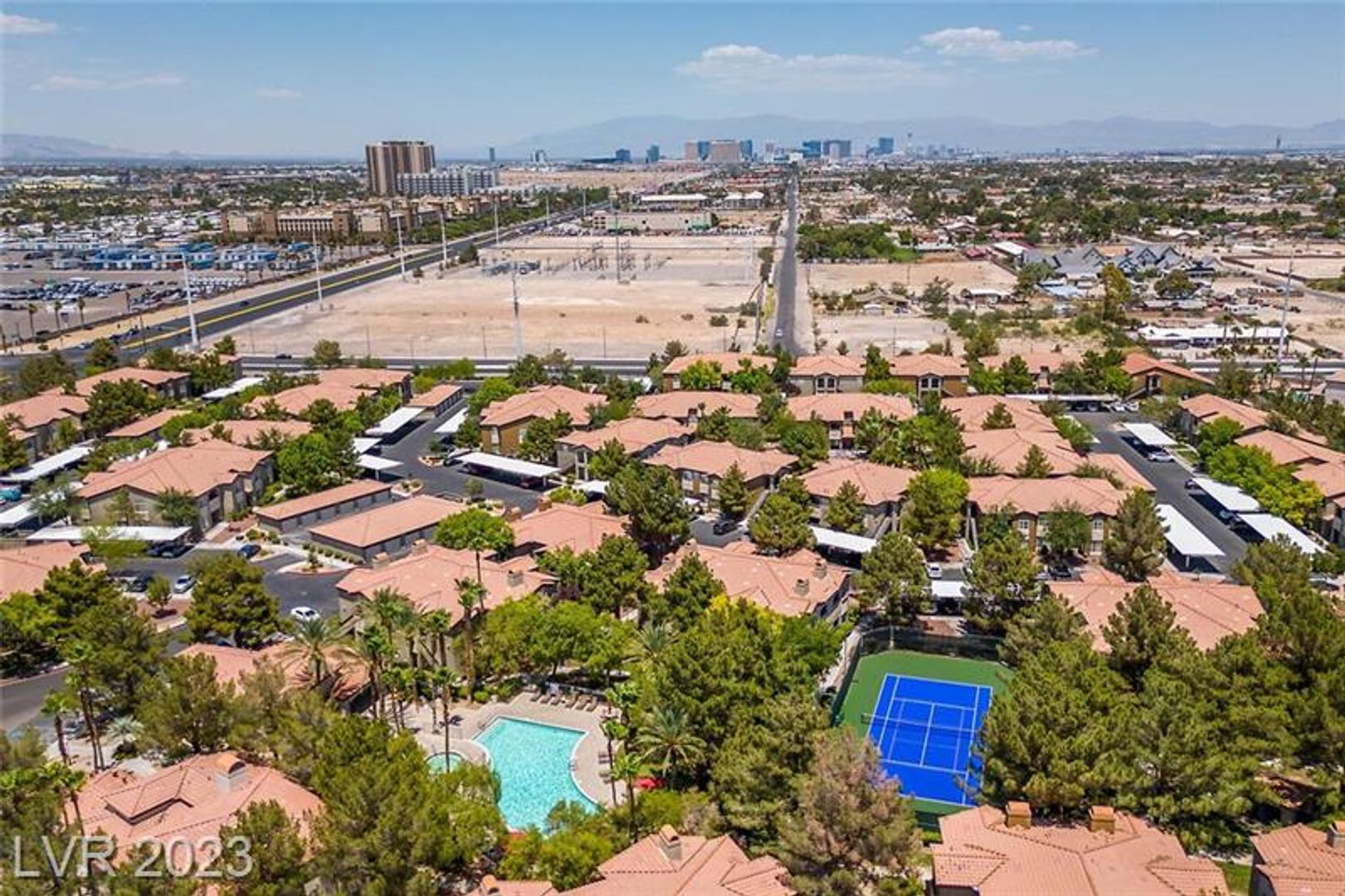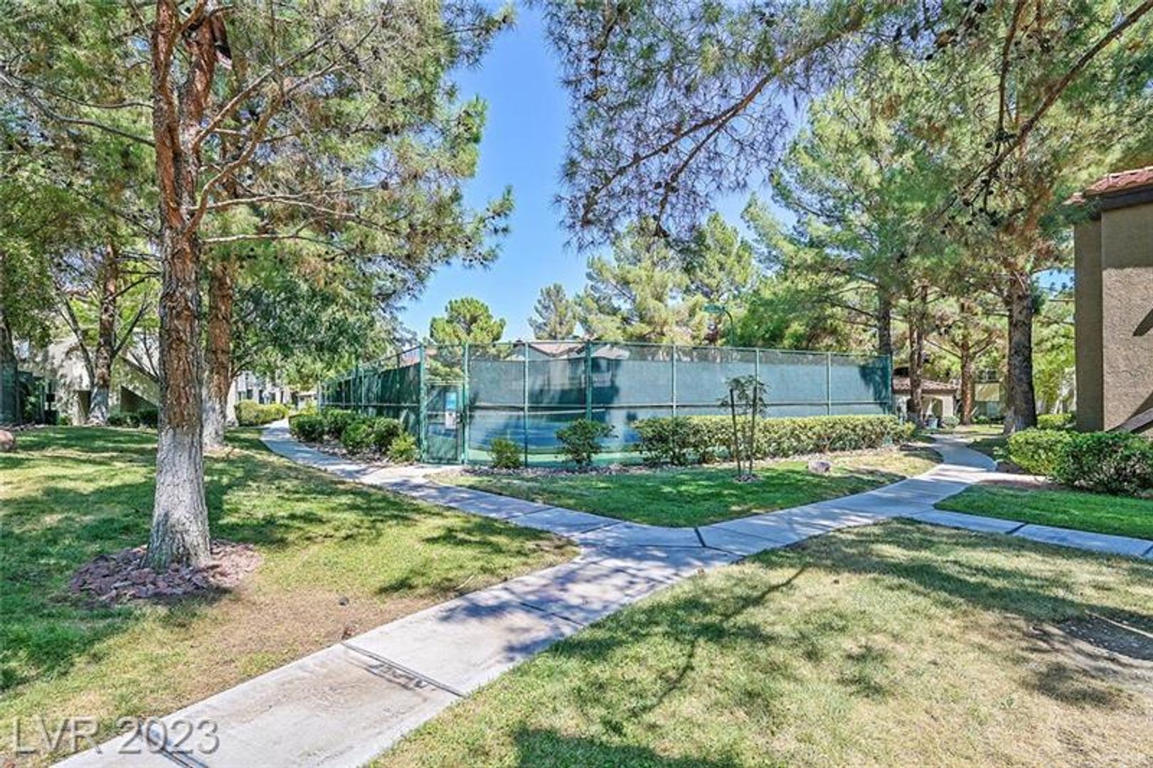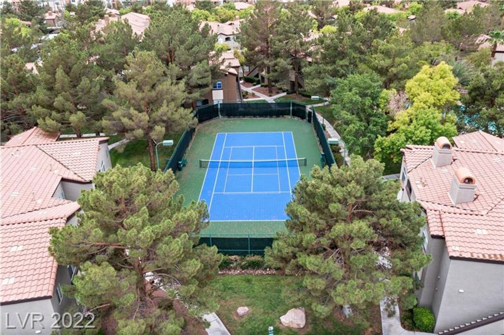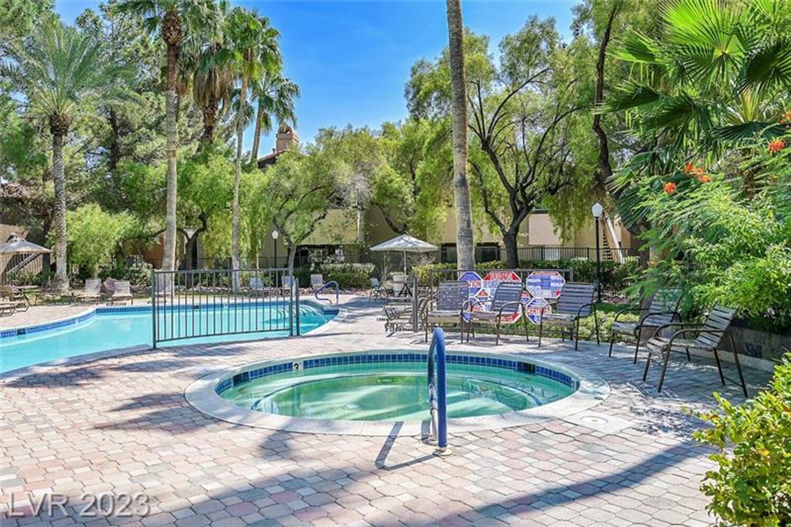 Highly sought after 1 bedroom, 1 bathroom condo on the 2nd floor in Las Vegas, NV. The unit features a private entrance, balcony, fireplace, primary walk-in closet and solid surface flooring throughout. The kitchen includes stainless steel appliances, and a separate laundry room that houses a full-size washer and dryer. Separate water heater closet on the balcony. The community offers a pool, tennis courts, and a park within a guard-gated complex. Carport parking is provided, and the location is close to shopping, restaurants, the 15 Freeway, and South Point Casino.