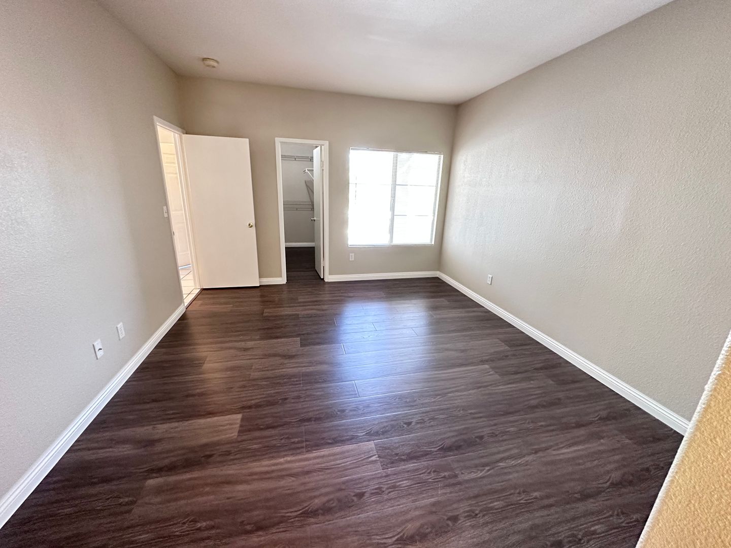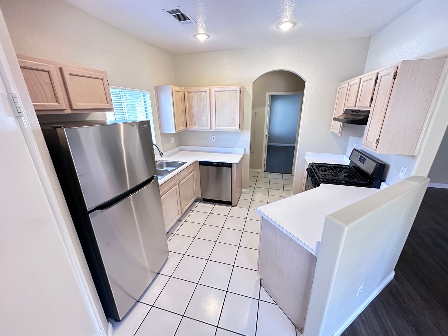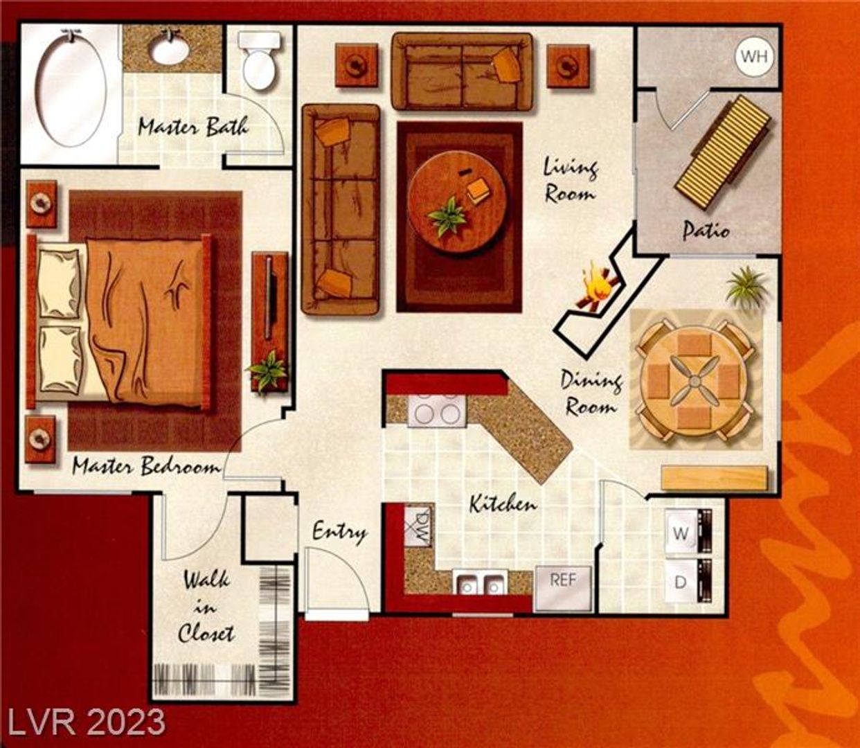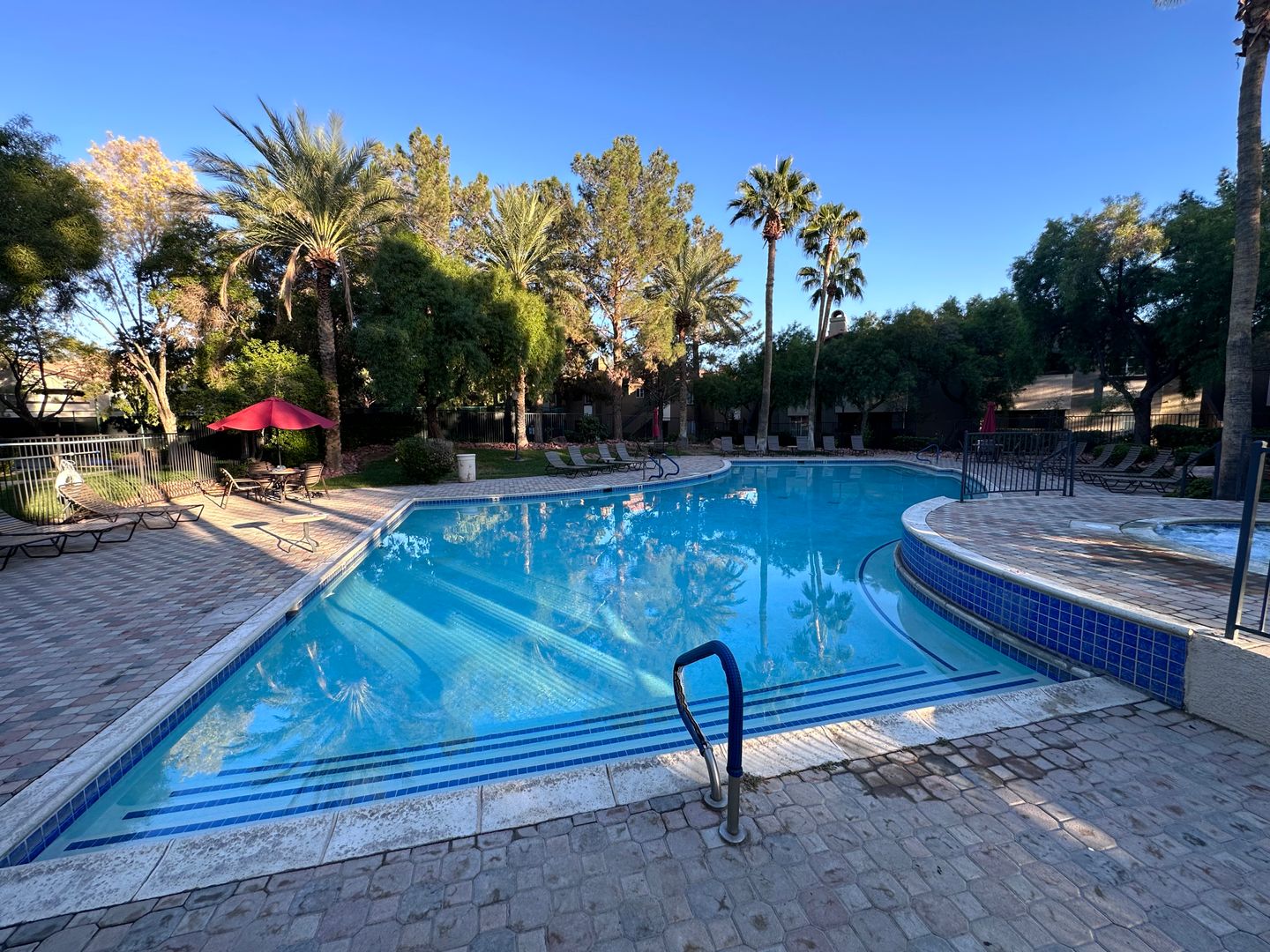 Highly sought after 1 bedroom, 1 bathroom condo on the 2nd floor in Las Vegas, NV. The unit features a private entrance, balcony, fireplace, primary walk-in closet and solid surface flooring throughout. The kitchen includes stainless steel appliances, and a separate laundry room that houses a full-size washer and dryer. Separate water heater closet on the balcony. The community offers a pool, tennis courts, and a park within a guard-gated complex. Carport parking is provided, and the location is close to shopping, restaurants, the 15 Freeway, and South Point Casino.